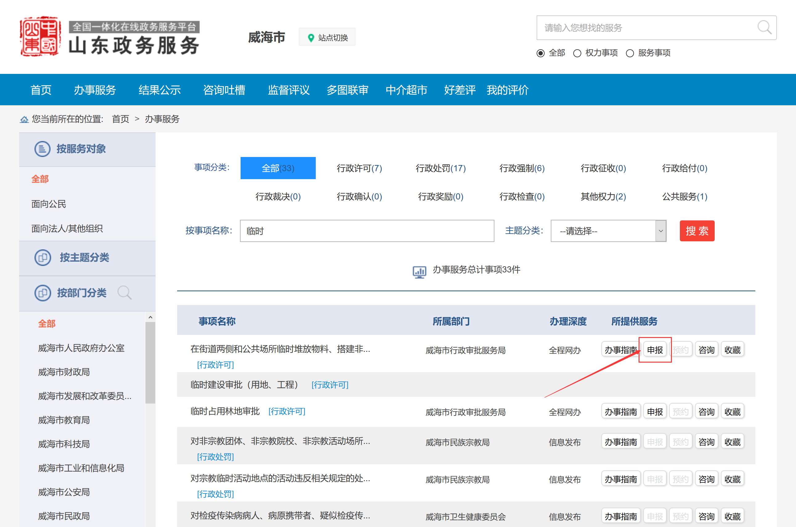 1.输入http://whzwfw.sd.gov.cn/wh/public/index访问山东政务服务网(威海站)
