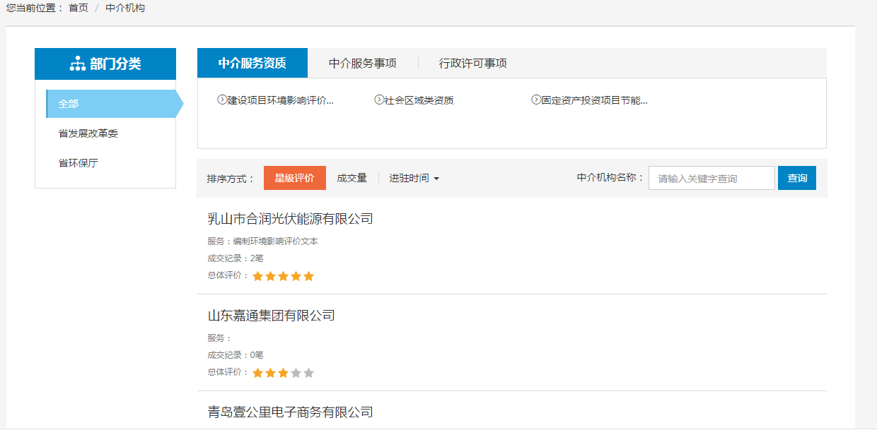 针对具有中介服务资质的中介机构进行信息完善并对中介机构的资质进行审核,对已经参与中介服务事项的中介机构进行业务引导。便于中介机构对所提供的服务进行展示和查看。