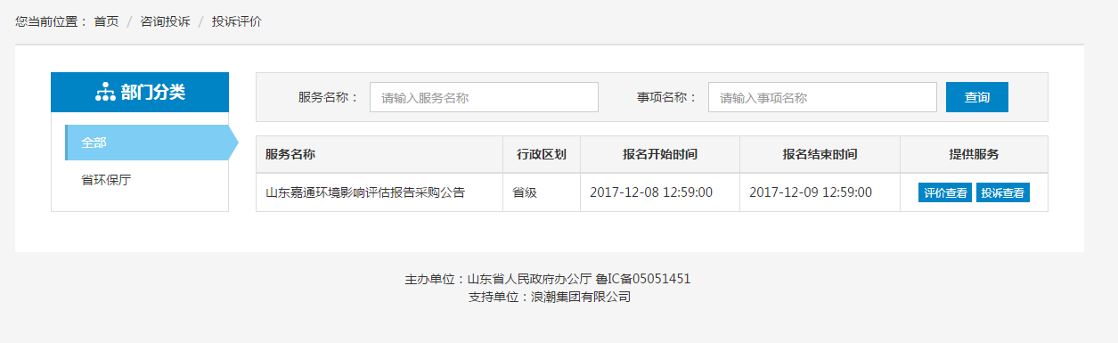 2.在“办事服务”页面根据需要办理的具体事项在左侧“按部门分类”中查找该事项所在的部门,然后在该部门下查找具体办理的事项,也可在事项名称框中直接输入事项名称进行查找。